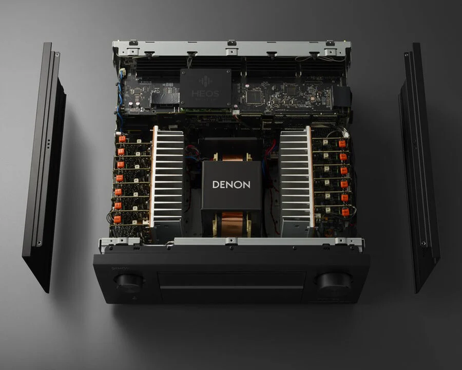 Built with Denon’s signature craftsmanship, each channel is powered by an independent PCB, minimizing crosstalk and distortion. Nine premium, 2-channel DACs maximize clarity across all 17 channels, while gold-plated speaker terminals and a reinforced chassis prevent interference, ensuring clear, high-fidelity audio.