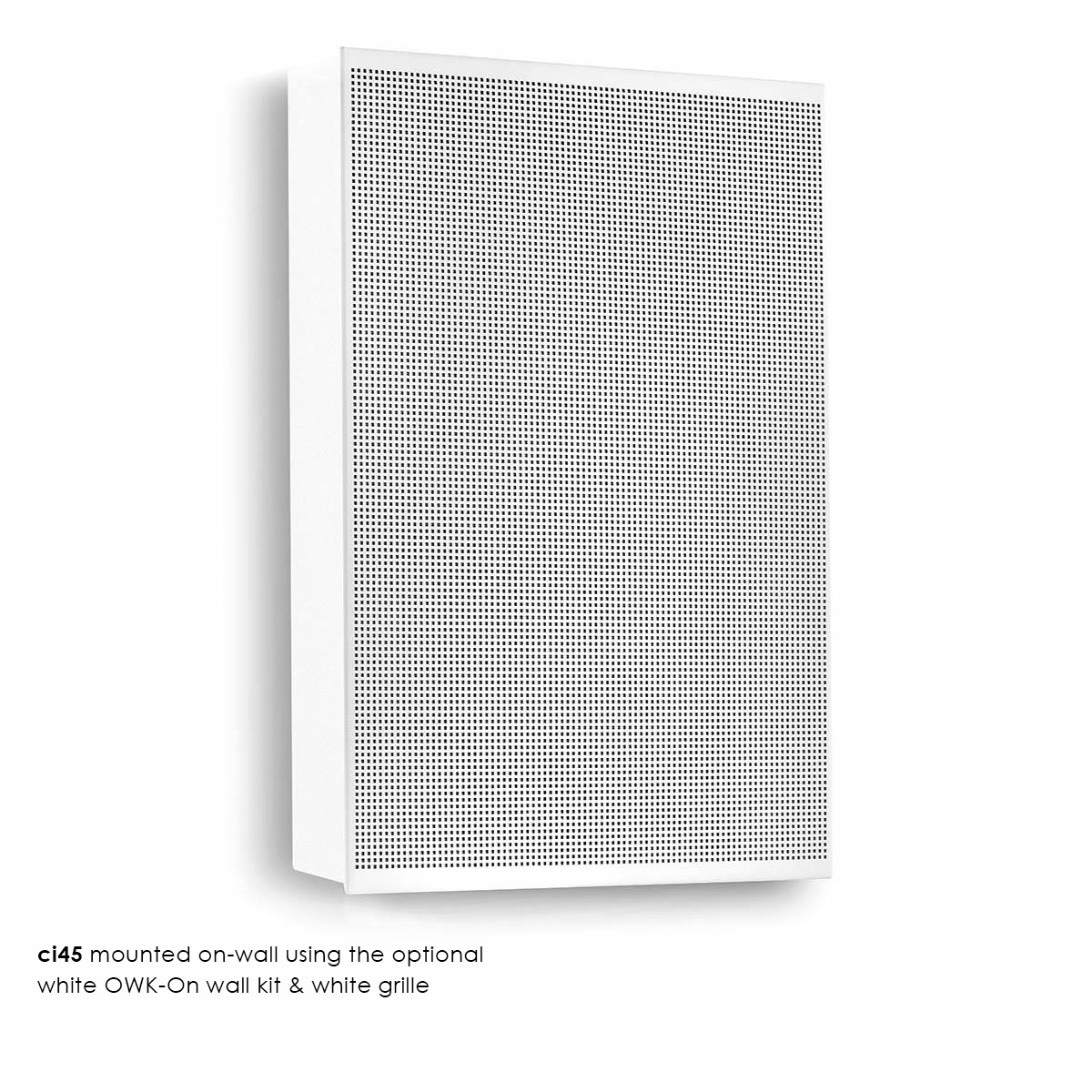 Visually, the ci45 is designed to disappear. It comes with a white, bezel-less, magnetic micro-perforated grille that can be painted to match any wall or ceiling color. For those who prefer a visible, high-tech aesthetic, the speaker can be used on-wall with the optional On-Wall Kit (OWK), which transforms the unit into a sleek, modernist monitor. Whether you are building a 2026-spec immersive media room or a professional post-production facility, the PMC ci45 delivers the scale and soul of a flagship monitor in a format that respects your space.