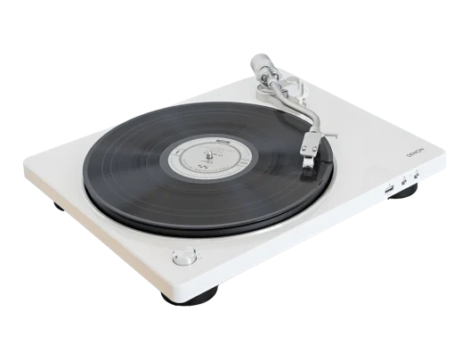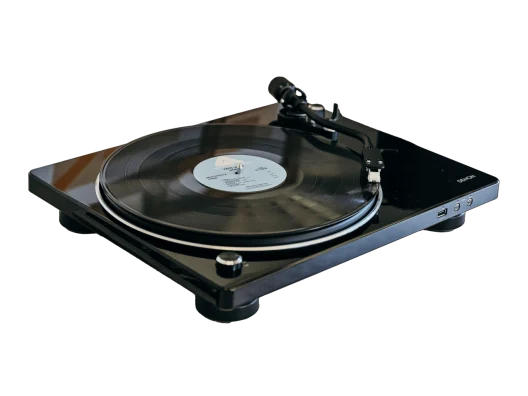 Denon DP-450USB Stereo Turntable with USB. It has a USB output that enables you to rip your favorite tracks directly onto a USB flash drive in MP3 or WAV format. The turntable features an 8.66″ tonearm tipped with a moving magnet (MM) cartridge and accepts optional moving coil (MC) cartridges to suit your preferences. The Denon DP-450USB also has an RCA output with a built-in switchable equalizer, allowing you to connect it to virtually any stereo system. Its auto speed sensor helps prevent speed fluctuations during playback, which can distort the sound.
