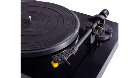 The tonearm is a static-balance, straight- tube design with precision bearings, built- in anti-skate adjustment and removable bayonet-style headshell. A premounted moving-magnet cartridge takes all the guesswork out of setup and assures proper vertical tracking angle, tracking weight and azimuth adjustment right out of the box