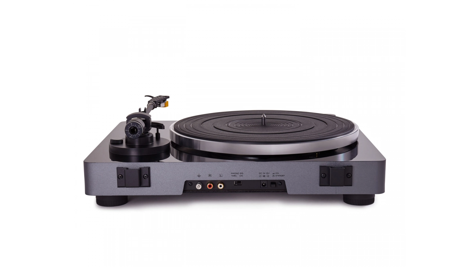Superior isolation is achieved with a chassis designed to minimize the sonic effects of vibration and feedback. A low-noise DC servo motor drives a die-cast, high-inertia aluminum platter with special record mat via a rubber belt, resulting in stable speed and minimal wow and flutter.
