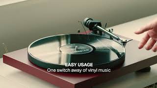 The heavy 1,7 kg die-cast aluminum platter gets reworked and precision balanced in an extra step to obtain a perfect platter. The heavy aluminum platter has a ring made of TPE (thermoplastic elastomer) on the inside that helps to dampen all resonances and thus minimize wow and flutter. The Debut EVO 2 platter is anti-magnetic, which allows you to use MC cartridges and upgrade to our True Balanced Connection technology. Our separately available Record Puck E provides an extra level of damping and stability, so it is the perfect add-on for your Debut EVO 2.