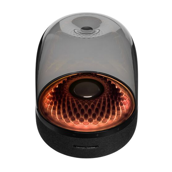 Aura Studio 4’s signature transparent dome amplifies and radiates elegant ambient illumination in all directions. Inspired by the beauty of the natural world, the shifting patterns and colors of the diamond-effect lighting bring that same sense of wonder to any space. Choose between 5 distinct animated themes to match the mood of your music—and delight your senses.