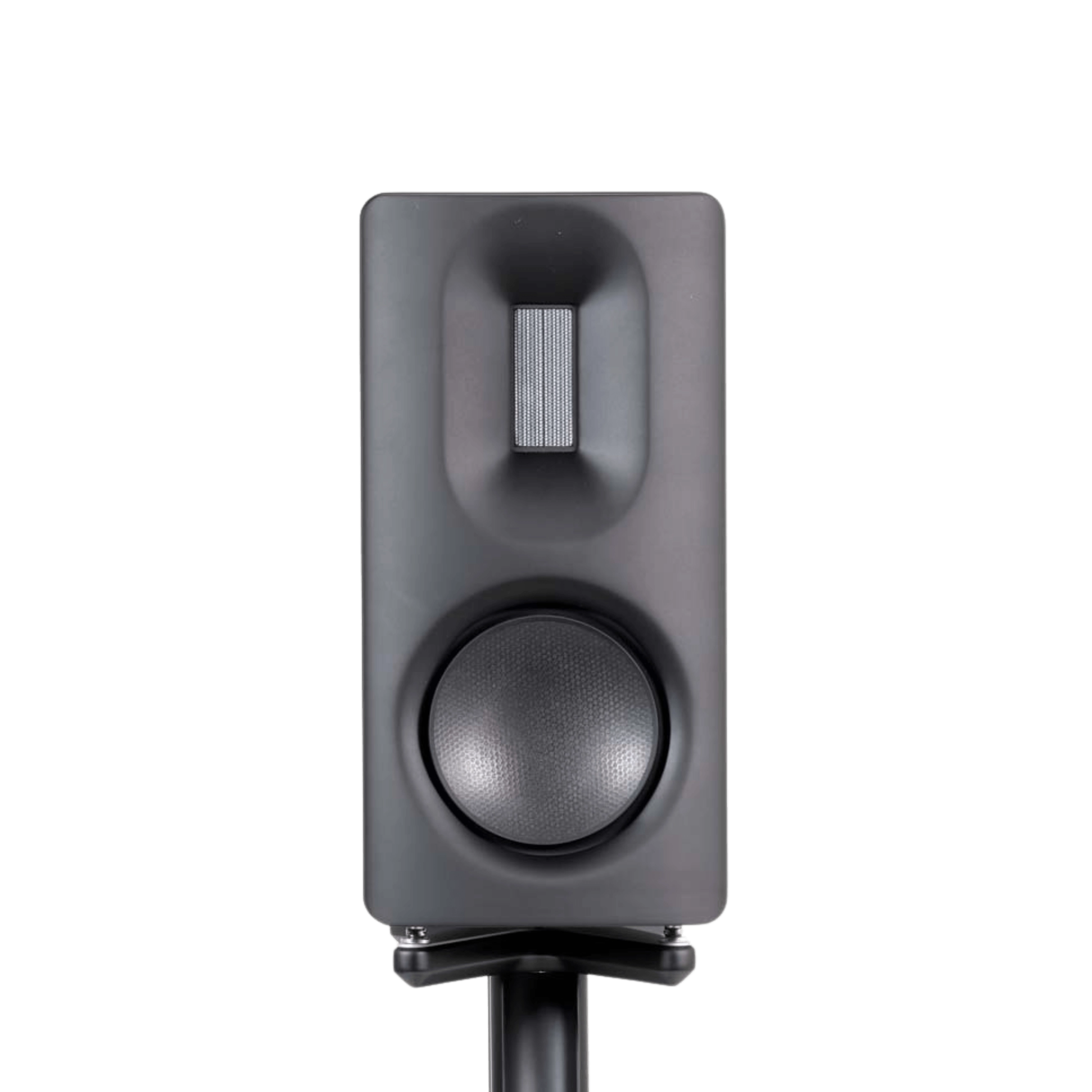 The efficiency of this closed ribbon tweeter amounts to an exceptional 94dB and operates from approximately 2.5 kHz upwards. The moving mass is extremely low at 0.01 grams. The totally concealed tweeter has the capacity to operate at an incredible speed, which is an absolute prerequisite to unlocking the most subtle and refined sound details of any kind of music. The enormous robustness of this tweeter allows it to handle extremely high transient peaks without any ear fatiguing breakups. No transformers are being used.