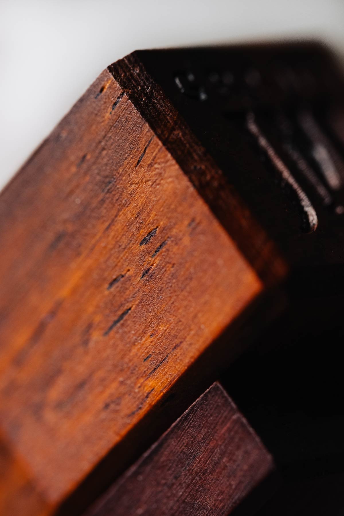 The flagship Grado cartridge is nestled inside a cocobolo housing, adding solid mass and a bold yet revealing signature sound. Cocobolo, known for fine instruments and those chess sets that look too nice to touch, is some of the most beautiful and tonally pleasing woods we have ever used. This specially selected species of cocobolo goes through a variation of thermal aging processes and enhances its ability to better dampen and control the resonant frequencies throughout the cartridge. Its denseness and grain is a primary reason why it produces such a unique sound.