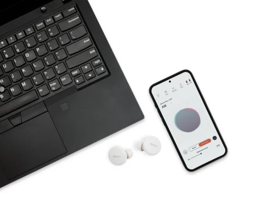 Masimo AAT creates a unique hearing profile for Denon AHC15PL by playing tones into your ears and measuring otoacoustic emissions (OAEs), which are generated by the inner ear during sound amplification. These OAE measurements determine your ear’s sensitivity to different frequencies. The collected data is then synthesized using a self-learning engine to form your personalized hearing profile. This profile is utilized by the earbuds to tailor the music to match your hearing profile, ensuring you experience every detail of your favorite music.