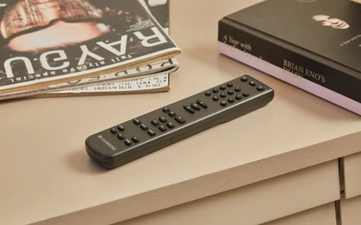 Slim elegant design – classic hi-fi design, floating effect wedge front foot, lunar grey finish
