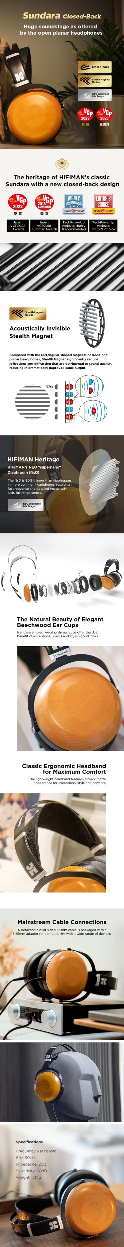 The Sundara closed-back Planar Headphones use the Stealth magnet system, sensitivity is much higher, making these easier to drive than the open version and Hifiman used gorgeous Beech wood ear cups. Wood finish is more matte than the photos and the finish is excellent.