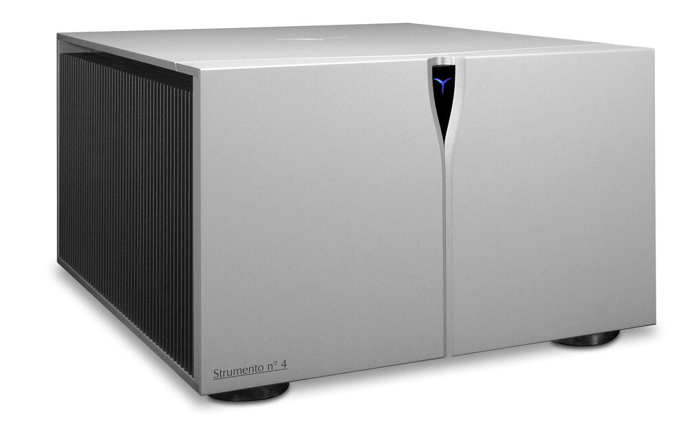 Strumento N°4 Signature stereo power amplifier is a two-channel unit designed for uncompromising sonic performance and refined aesthetics. With a bandwidth exceeding 1MHz and up to 1000 Watts of output power, it delivers remarkable precision and effortlessly controls even the most demanding speakers.
