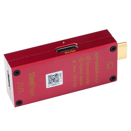 iDefender Max features a side USB-C port for separate, clean external power. This disconnects the USB power from the PC and replaces it with a cleaner, more audiophile-grade solution such as the SilentPower iPower2.