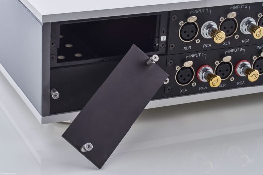 A modular system of cards for MM/MC phono inputs; SPDIF and USB 192kHz/32bits digital inputs; analog unbalanced and balanced inputs;