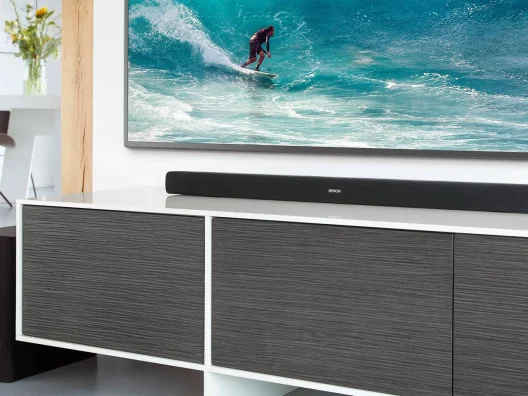 At approximately 2″ tall, the Denon DHT-S316 fits in most spaces and can be placed in front of your display without blocking its bottom edge or IR remote sensor. You can also wall-mount the soundbar with the built-in keyholes.