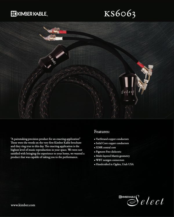 The Kimber KS 6068’s all silver (VariStrand & solid core silver conductors) design delivers maximum fidelity within the series by virtue of silver’s superior conductivity (6% greater than copper). Low level dynamics are revealed with the utmost delicacy and precision. The reproduction of space within the soundstage is at its best with the 6068