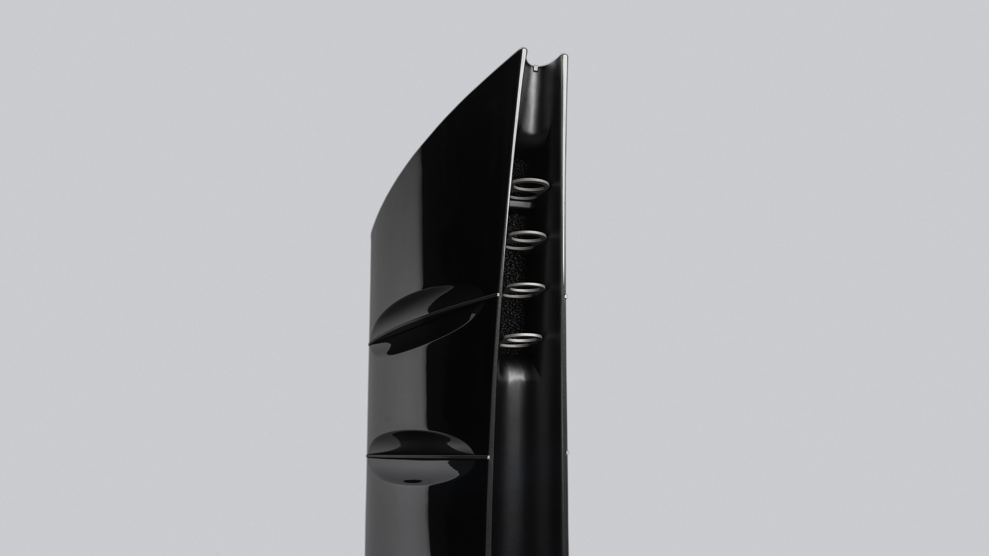 The efficiency of this closed ribbon tweeter amounts to an exceptional 94dB and operates from approximately 2.5 kHz upwards. The moving mass is extremely low at 0.01 grams. The totally concealed tweeter has the capacity to operate at an incredible speed, which is an absolute prerequisite to unlocking the most subtle and refined sound details of any kind of music. The enormous robustness of this tweeter allows it to handle extremely high transient peaks without any ear fatiguing breakups. No transformers are being used.