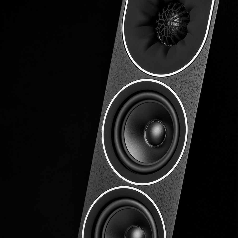 The precision soft dome tweeter and supreme 55mm soft dome midrange driver are housed in a profiled baffle with proprietary wave guide technology, giving effortlessly spacious, tangible vocals and beautiful extended high frequencies to define the recorded space.