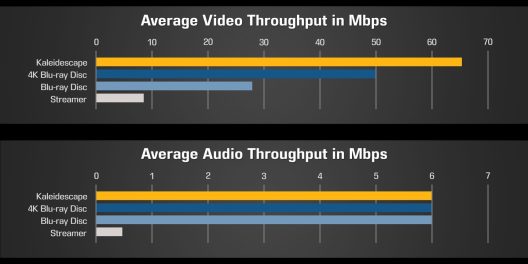 Movie bitrates up to 100 Mbps. Kaleidescape movies are high bitrate and downloaded to local storage for uninterrupted, flawless playback. There is never buffering or degradation, unlike streaming services that are limited by internet infrastructure.